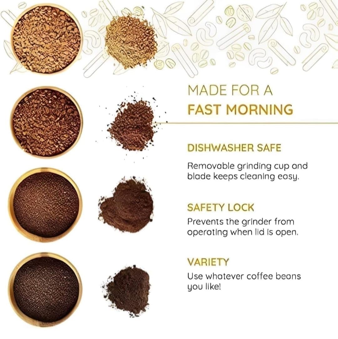 ✅ Premium Stainless Steel Blades – Razor-sharp and rust-proof, ensuring fast and even grinding, every time.